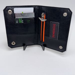 This bifold wallet features 3 card slots and a zipper pocket. The exterior is made with either cotton fabric or faux leather, depending on the style, while the interior is made with faux leather.. Each wallet has a custom zipper pull and snap button closure. It measures approximately 3 1/2 inches wide by 5 inches height.